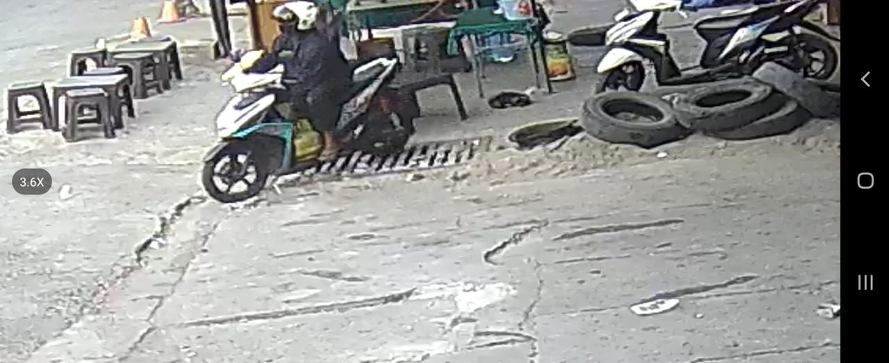 Dalam hitungan menit, seorang pelaku yang mengendarai sepeda motor Mio 125 berwarna putih hijau langsung mengambil tabung gas LPG yang diletakkan di warung tersebut.