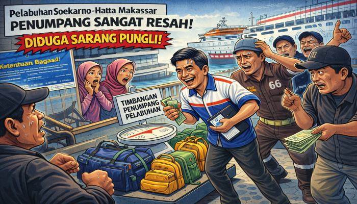 Makassar, Lintasnews5terkini.com — Dugaan praktik pungutan liar (pungli) kembali mencoreng layanan publik di sektor transportasi laut.kali ini, sorotan tajam mengarah pada proses penimbangan bagasi penumpang kapal milik PT Pelayaran Nasional Indonesia (Pelni) di Pelabuhan Soekarno-Hatta Makassar.