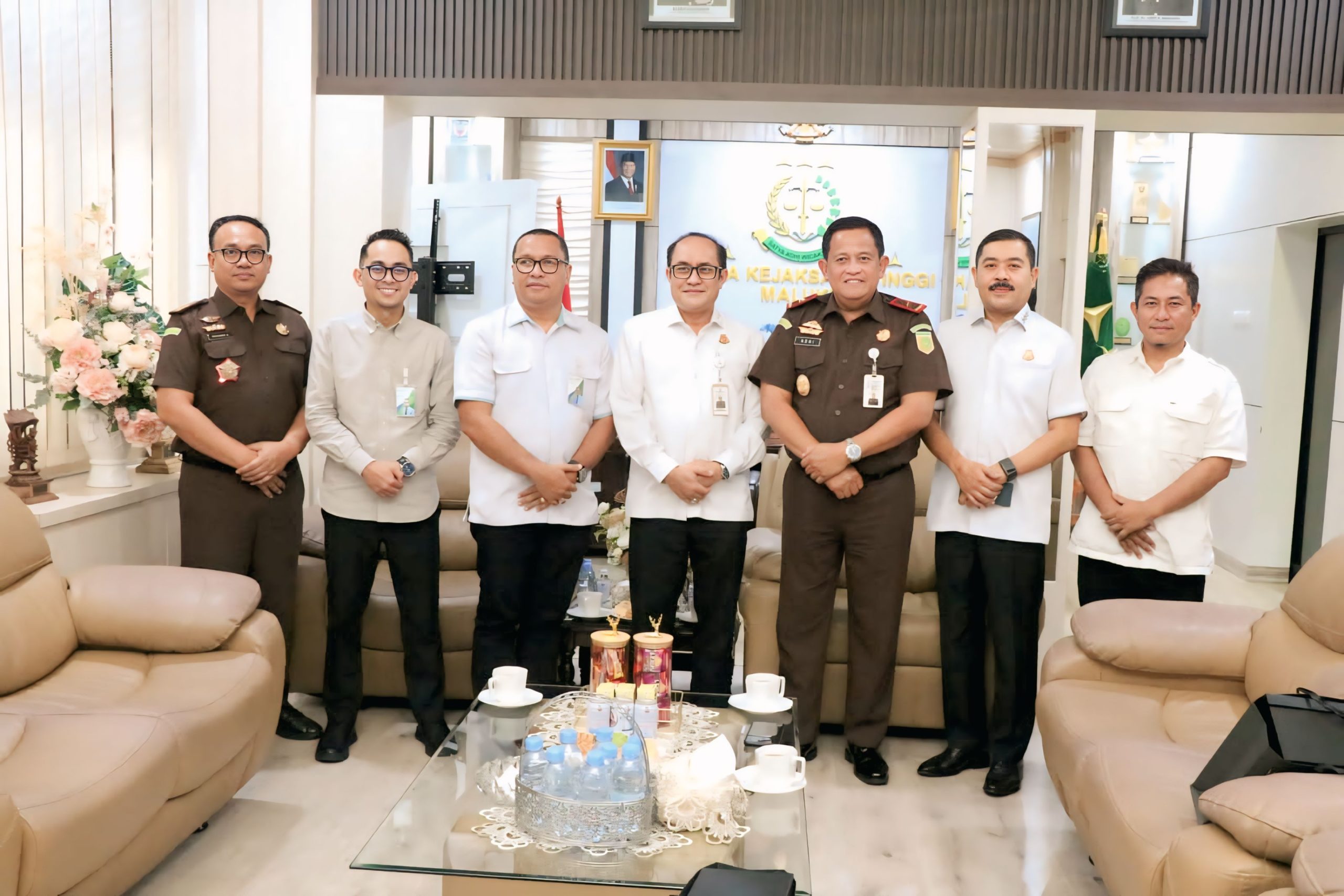 Saat menerima kunjungan silaturahmi ini, Kajati Maluku bersama Wakajati Maluku Adhi Prabowo, Asisten Perdata dan Tata Usaha Negara Raden Sudaryono, Kabag Tata Usaha Ariyanto Novindra dan Kasi Pph Muh. Rizal Manaba.